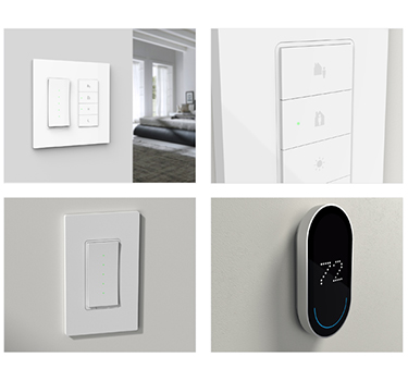 The ABB-free@home® ecosystem includes a wide range of switches, dimmers, fan controls, and customizable keypads—all connected through a home hub, smart home app, and optional wall-mounted touch panels.